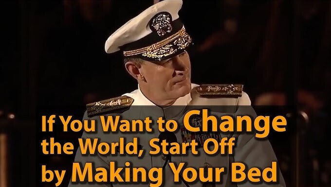 Making our beds is a good start to a successful day, a momentum builder. Here is that speech.